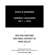 2017 ASHES & DIAMONDS CABERNET SAUVIGNON NO 1 RED HEN VINEYARD OAK KNOLL DISTRICT OF NAPA VALLEY 750ML